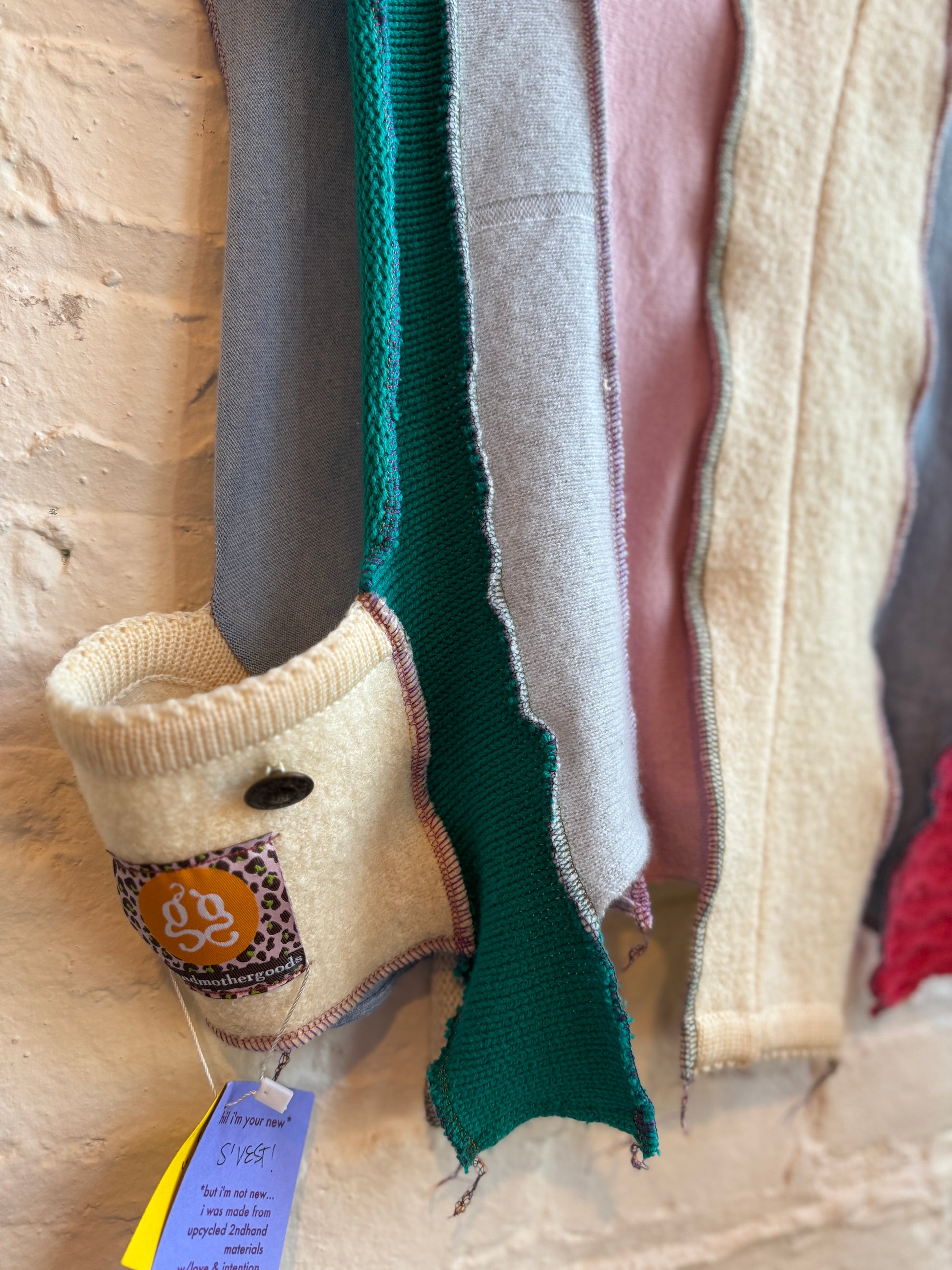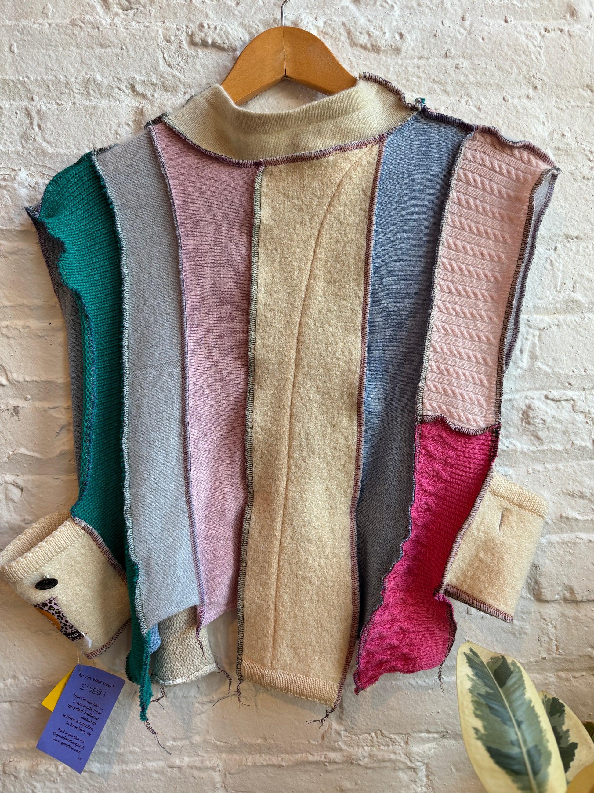 This cozy chaotic collection is our adorable answer to cooler weather and wardrobe versatility. Featuring 100% secondhand cashmere, cotton & wool, exposed [inside-out] seams and no real “front” or “back”, there's no wrong way to layer her.
