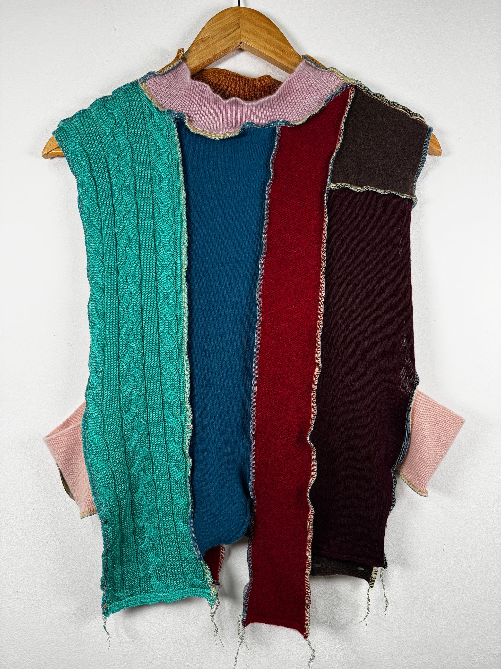 This cozy chaotic collection is our adorable answer to cooler weather and wardrobe versatility. Featuring 100% secondhand cashmere, cotton & wool, exposed [inside-out] seams and no real “front” or “back”, there's no wrong way to layer her.