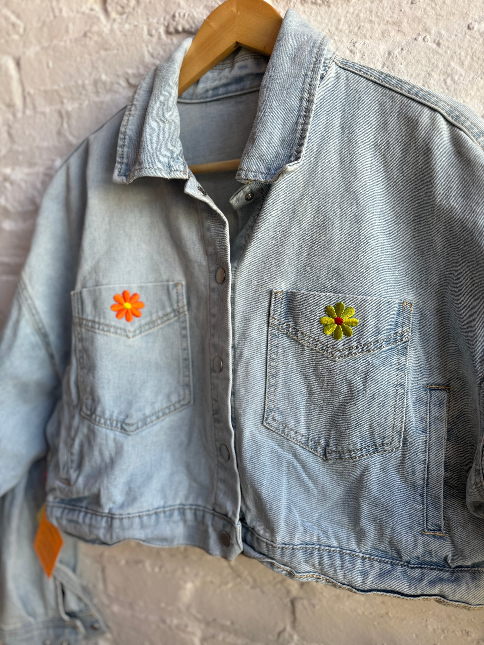 First, Erin Dawn Campbell thoughtfully designs fabric mosaics from secondhand, vintage, and scrap materials at her studio in Charlotte, NC. Next, the handmade patches are shipped up to Brooklyn where they are paired with secondhand denim jackets & further embellished in the GrMo workshop for optimum wearing pleasure.