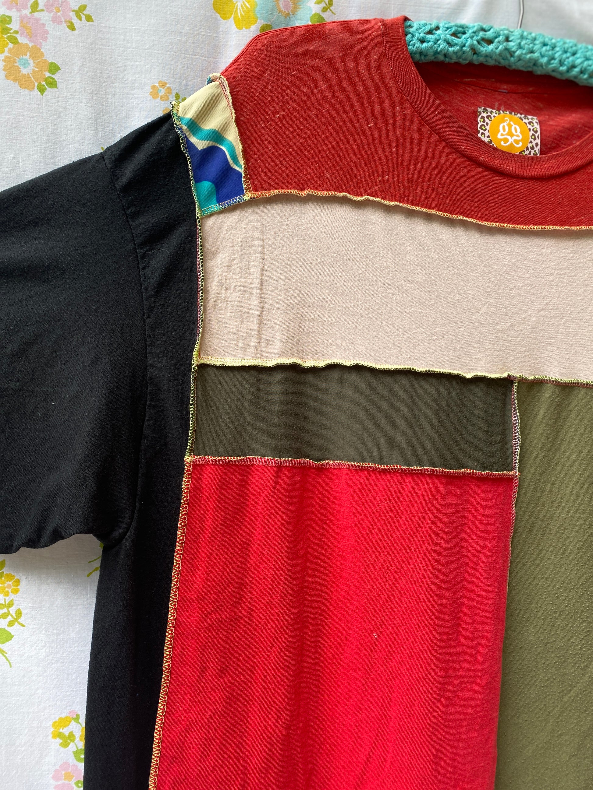 Handmade from at least 9 pieces of secondhand, scrap, and/or surplus materials, each « Saves Nine » piece is thoughtfully patched together into something new-to-you.